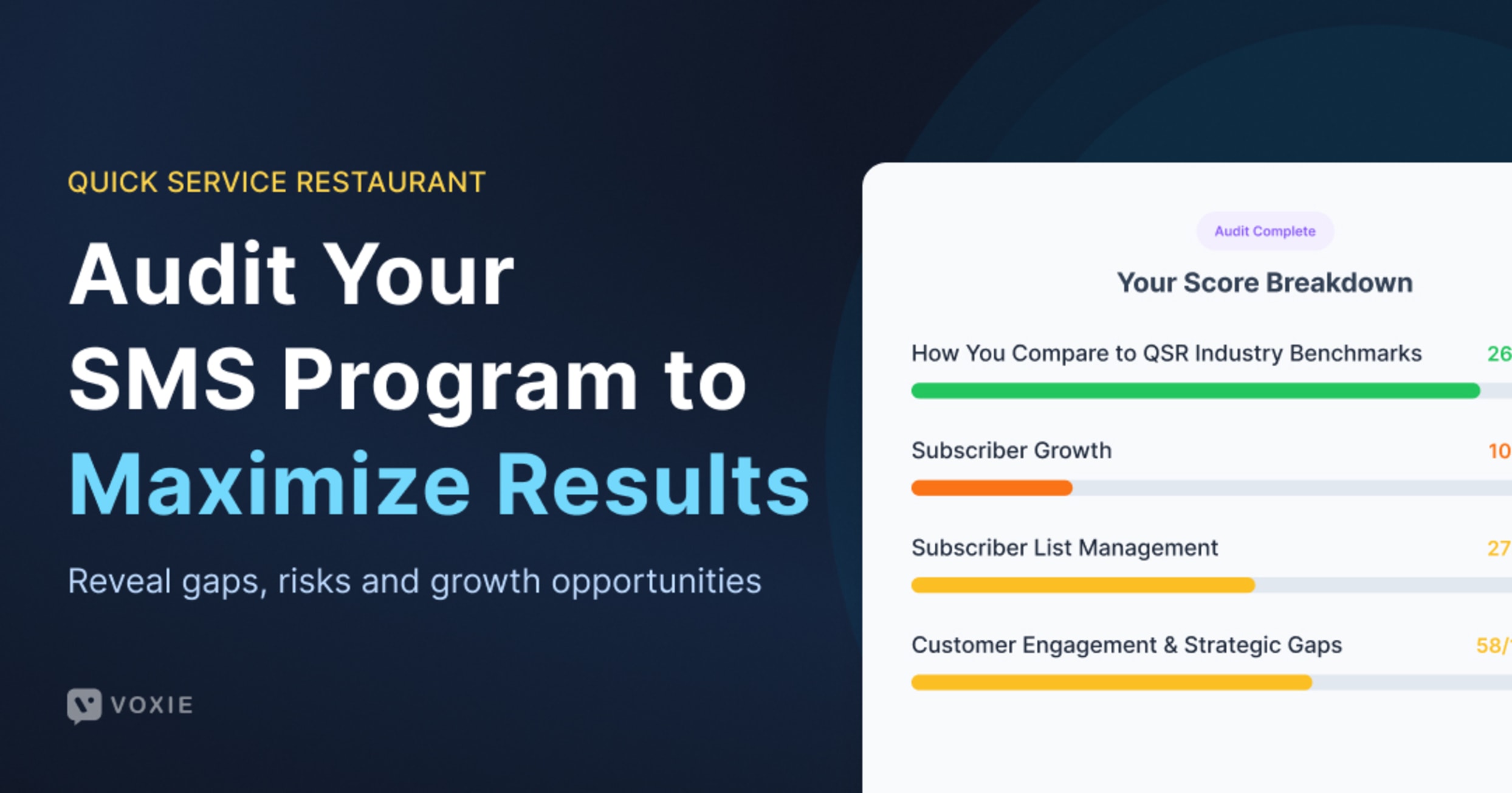 This self-audit was developed by Voxie's SMS experts, drawing on real-world experience working with leading franchise brands across restaurants, retail, and services. The 28 questions reflect the gaps that appear most consistently in QSR SMS programs—the areas where, when addressed, franchisors see the greatest lift in engagement, compliance, and network-wide performance.